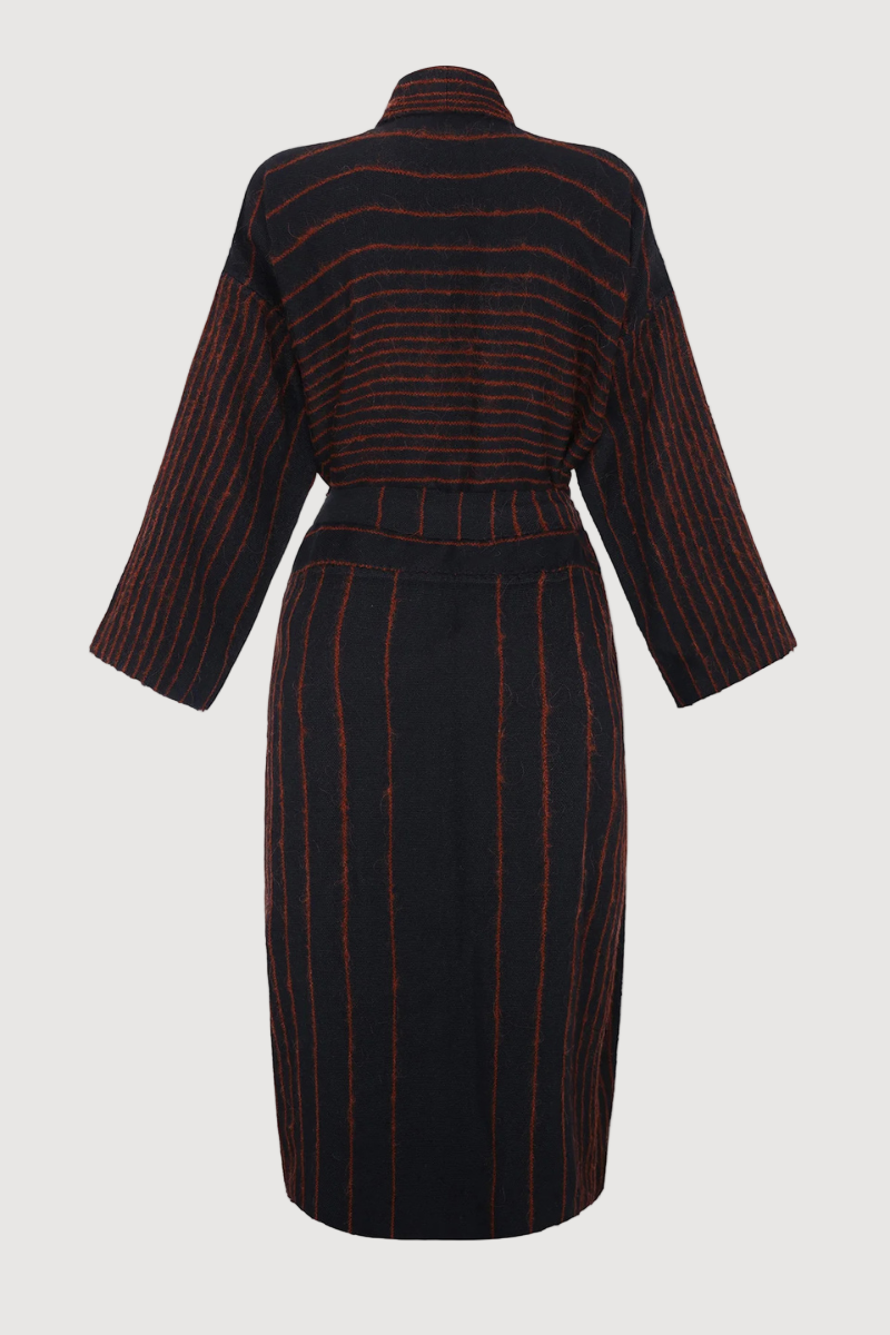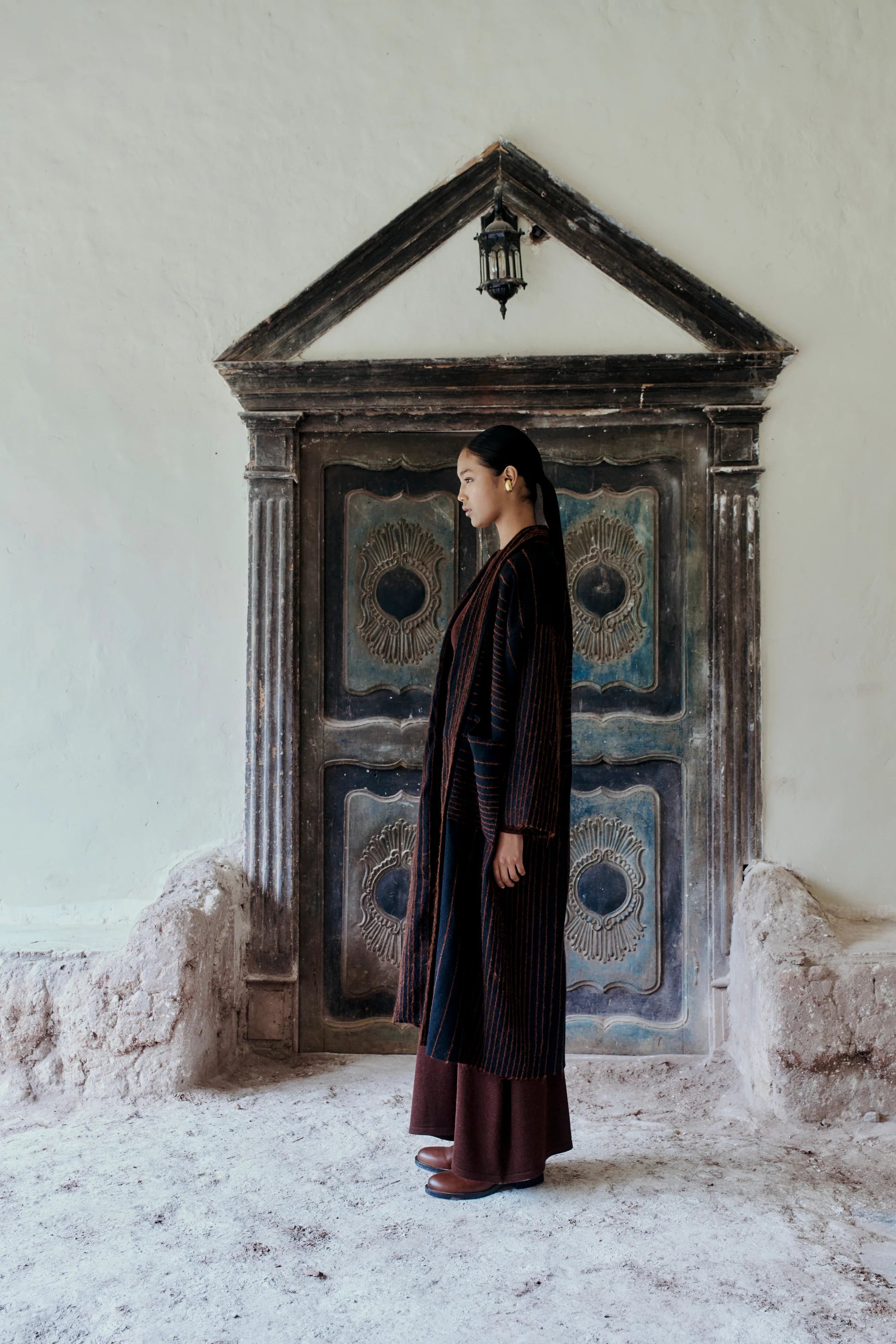 The Auzangate Coat brings back a classic long coat shape featuring a geometric textile design in a premium, Alpaca-Cotton blend. Lightweight, while extra warm and perfect for laid back, and more put together looks.