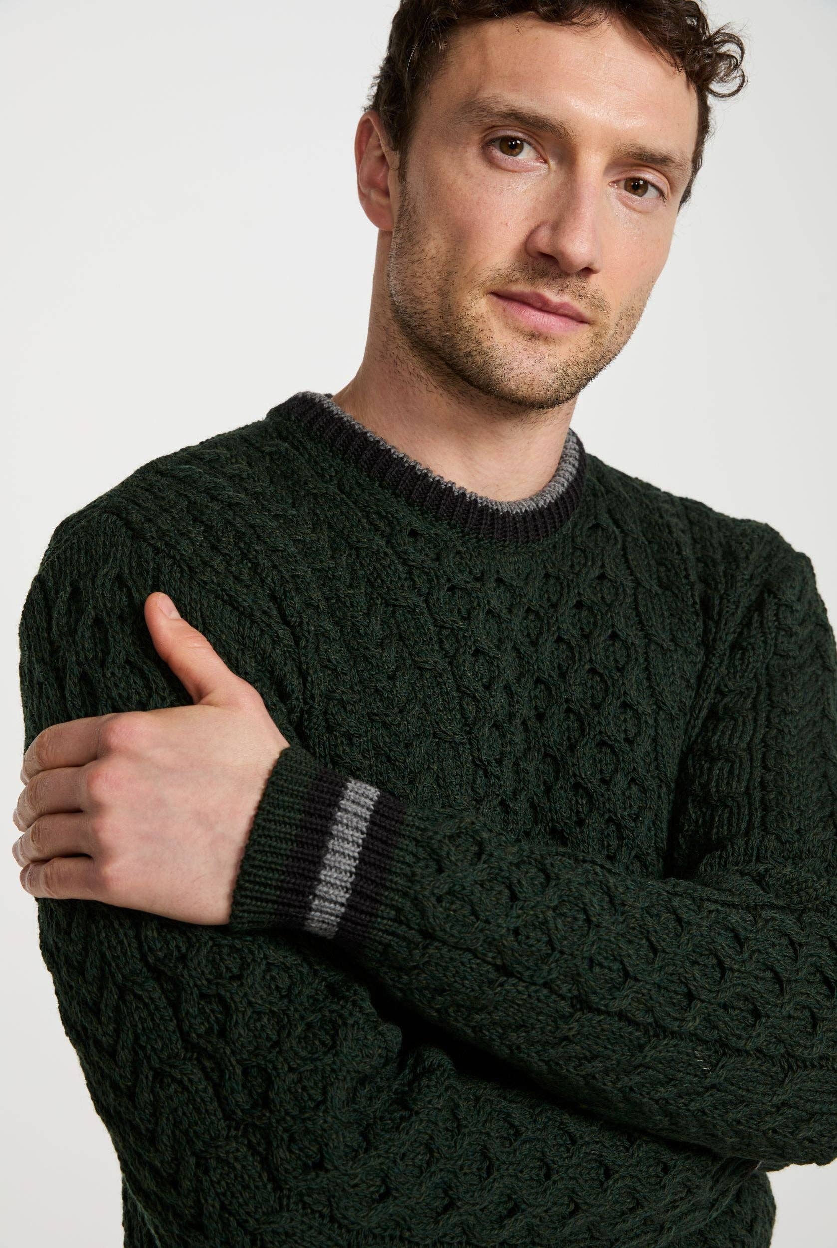 Inishbeg Mens Stripe Crewneck Sweater, Green
