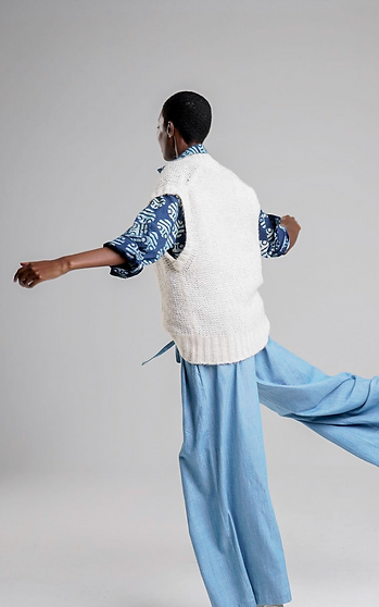 Named after the Haitian Creole word Chimen—meaning “path” or “road." This V-neck vest is crafted in Peru using an open, airy stitch in a soft alpaca-cotton blend. It features intricate crochet hand embroidery, inspired by the vèvè of Ogun.
